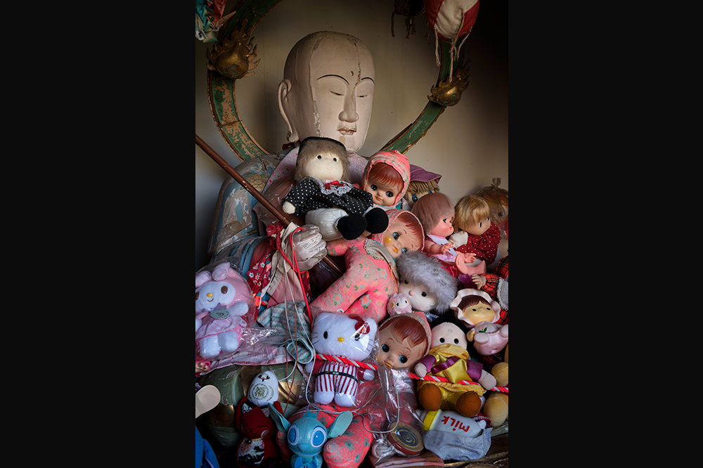 湯殿山は古代から再生の地とされ、死後の世界を思わせる月山山頂と対をなす。また明治維新の神仏分離以前は、弘法大師空海ゆかりの密教の聖地として出羽三山でも別格の扱いだった。 また湯殿山周辺には幾つもの仏教寺院があり、庶民の信仰を集めてきた。大日坊本堂祭壇裏にある仏像たちは、都や中央にある美術品のような仏像と違って、土着的な信仰と直接つながる、素朴で、庶民にもわかりやすい姿をしている。刀を飲む下半身が魚の波分不動明王がある。子宝に恵まれるという子安地蔵には小さな人形が山と供えられている。他にも数十体の像が並び、娯楽の少ない山間の庶民を惹きつけてきた。小澤はこんな土着的な仏像が大好きだ。