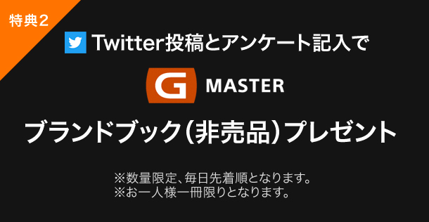 - 各種受付に加え、ご来場特典の「オリジナルグッズ」や「G MASTER ブランドブック」のお渡しを行います。