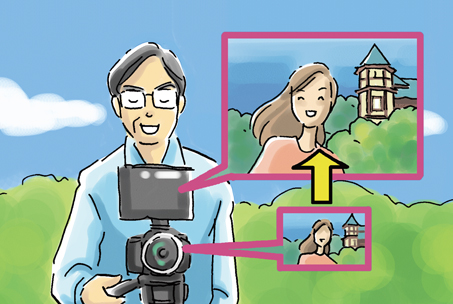 αシリーズは液晶画面でアングルを確認できるため、雲台を動かしながらアングルを決定することができます。長めのリモコン部分を持つことで微調整も簡単です。