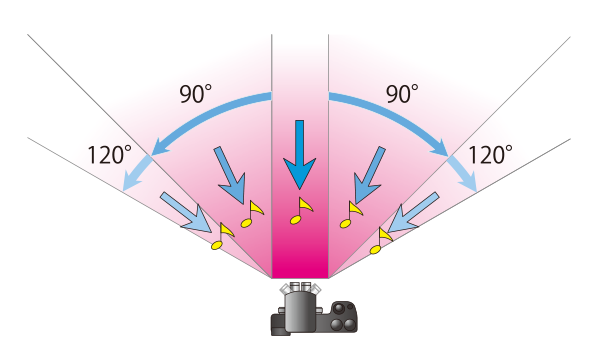 LRのマイク部が可動する、2-wayステレオマイクを採用しています。集音範囲を0度と120度の2つのポジションから選択できるので、撮影用途に応じて使い分けられます。