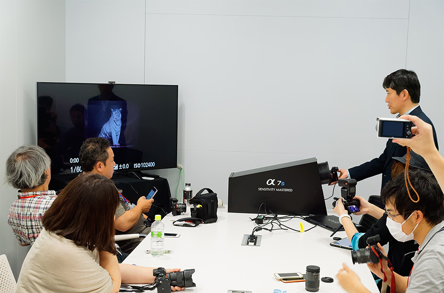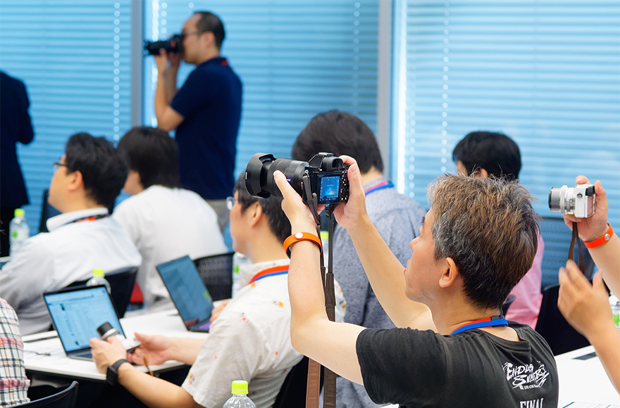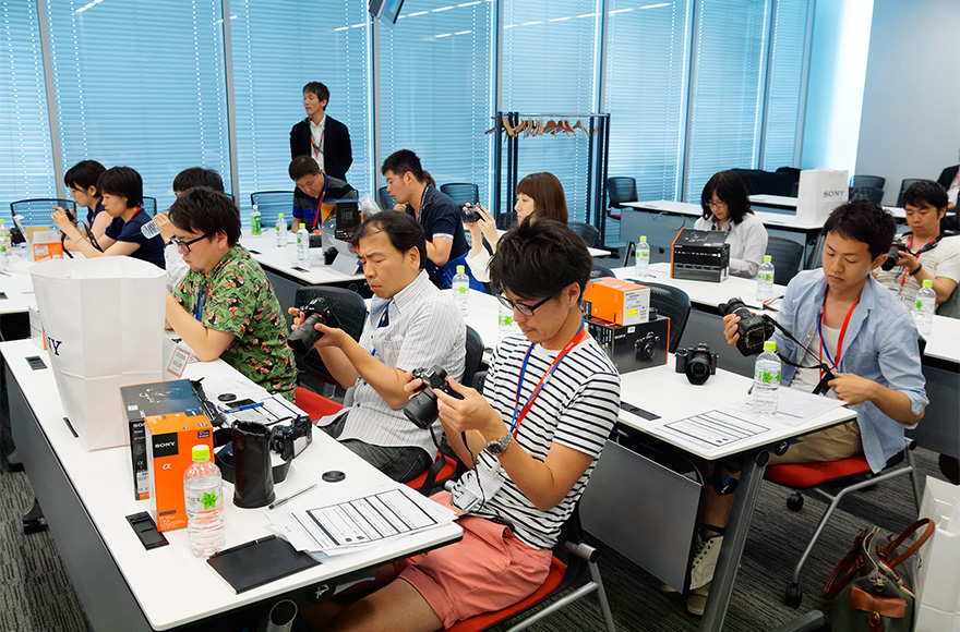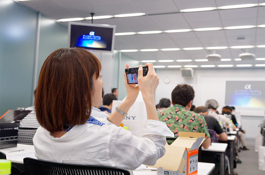 ミーティングの最後には、カメラのお貸し出しのご案内を行いました。アンバサダーの皆さまには1か月間、α7(本体、キットレンズFE 28-70mm F3.5-5.6 OSS及びSonnar T*FE 55mm F1.8 ZA)またはα6000(本体、キットレンズE PZ 16-50mm F3.5-5.6 OSS)をお貸し出しし、その使用感を存分体験していただきます。さすがにどなたも熱心なカメラユーザー。内容物確認のために箱を空けた瞬間から、その目は真剣そのものでした。