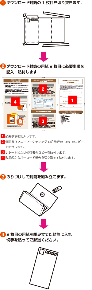 ・封筒がはがれないようしっかりとのりづけをお願いします。