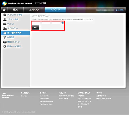 コードが登録されているかどうかは、アカウント管理画面の「コンテンツ」のタブをクリックして「PlayMemories Camera Apps」のアプリが登録されているかを確認します。