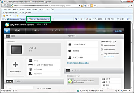 アカウント画面は、PlayMemories Camera Appsサイトとは別の画面で立ち上がります