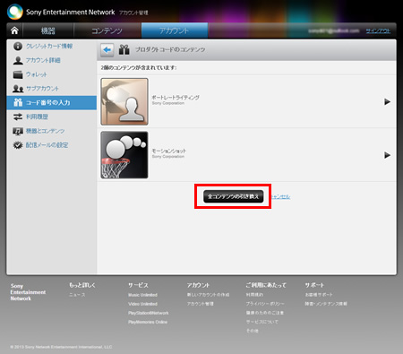 1.コンテンツ引き換え画面が表示されるので、画面下にある「全コンテンツの引き換え」をクリックします