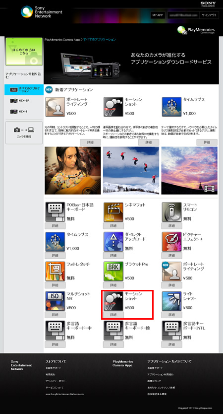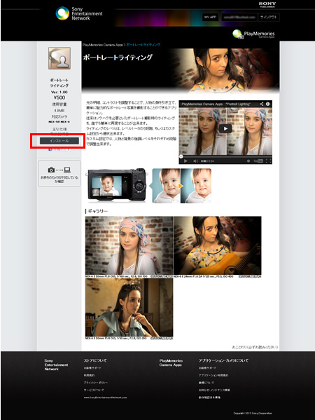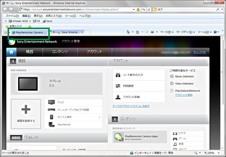 アカウント画面でのコード登録完了後、元々開いていたログイン済みのPlayMemories Camera Appsサイトには手続き上、一旦ログアウト後、再ログインが必要です