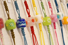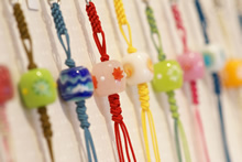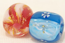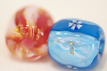 絞りをF8に設定して撮影。青色・赤色のトンボ玉両方に程よくピントが合い、自然な感じ。