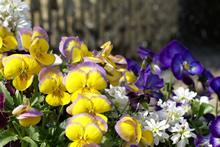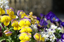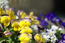 絞りをさらに絞って F8で撮影。ピントの合った黄色い花の前後の花にもきっちりピントが来てきれいです。でも背景にもピントが合いはじめ、ゴチャゴチャした感じになりました。