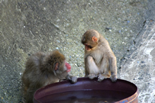 望遠側300mmにて、10m以上離れた場所にいたサルを撮る。親子のサルのほのぼのした会話(?)がこちらにも伝わってくる。