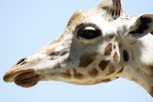 望遠側210域mmにて、背が高く近寄れないキリンの顔のアップもで身近に撮れる。キリンの顔ってやさしいですよね。