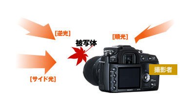 撮影者が太陽を背にして、被写体に正面から光が当たっている状態です。色鮮やかで、見た目に近い自然な感じが出せます。一方で、立体感のない、平凡な写真になりがちな光の当たりかたでもあります。