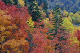 青い空や白い雲を背景に輝く、色とりどりの紅葉。紅葉が最も鮮やかに表現できるのは、やはり晴天時です。