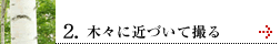 天候や光の質による写真の「青み」は、ホワイトバランスを「曇天(どんてん)」または「日陰」に設定するなどしてコントロールすれば、晴天のような黄緑に近づけることもできます。しかし、それぞれの天候が持つ雰囲気を、そのまま生かす表現もあります。青さを生かすなら、ホワイトバランスは「オート」ではなく、「太陽光」にします。