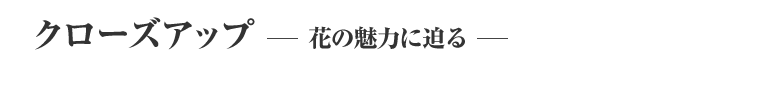 花をクローズアップで撮るときに大切なことは、何といってもピントをキチンと合わせること。ピントを合せる位置は意図によりさまざまだと思いますが、基本的に花の“しべ”に合わせると絵としての収まりがよくなります。