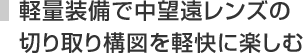 円形絞りの採用により、やわらかいぼけ味を演出し、周囲・背景との合わせ方からで心地よい立体感を引き出す。