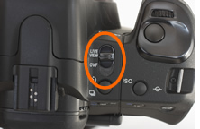 | カメラ上面のこのスイッチをLIVE VIEWに設定するだけでOK。 |