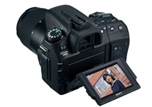 液晶画面を上下に傾けることができるので、楽な姿勢でハイアングルからローアングルまで、被写体を確認しながら撮影できます。 |
