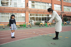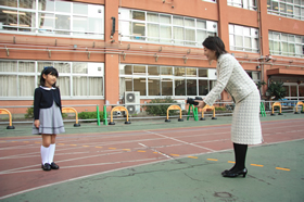 | あらかじめライブビューで子どもの写る大きさや背景を確認し、シャッターボタンに指をかけて準備します。あとは子どもを見ながら会話をし、表情を見て撮影しましょう。 |
