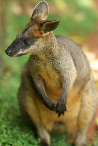 近寄れない動物撮影でも APS-C サイズなら 35mm判で約 200mm 相当の望遠レンズにボケを生かしながらの作品が撮れる。動物などの場合は顔だけにピントを合わせることで胴体は適度にボカすことができ、効果的。