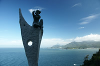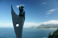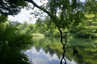 そこで、Dレンジオプティマイザー/アドバンスレベル3で撮ると、雲のトーンが出てきました。薄い水色の空も現れてきました。手前のしだの葉っぱのシャドウ部分も出てきました。フィルムで写真を撮る場合、カラーネガで撮影してフイルムスキャナーでトーンをゆるくしてスキャンすると、暗い部分を明るくすることができます。ただしそれは明るくはなっても、全体にコントラストの低い「ネムい写真」になってしまう。Dレンジオプティマイザーは、暗すぎる部分だけを明るくする、という点で、それとは違うものです。