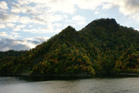 (6)のように手前の山肌の紅葉を出そうとすると、空は真っ白です。反対に空の雲をちゃんと写そうとしたのが