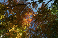 (10)のような写真も可能になります。逆光気味で、空の色は青。紅葉の色も明るく出ている。普通は