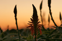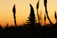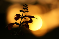(2)は、同じ時間帯に露出を変えて撮影したもの。露出を下げて花をシルエットにすることで、夕刻の雰囲気がでました。