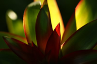 逆光で花びらや葉っぱを撮影すると透過光となって輝きますが、これが肉厚の植物だと光をあまり通さないため、
