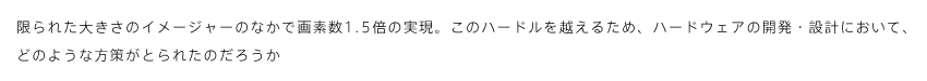 また、熱の問題もあります。イメージセンサーを新規開発することで性能は上がっているんですけども、そのために熱が上がらないように設計上の検討を重ねています。
