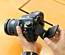 メカの設計としても、3年ほど前から縦位置でも使えるタイプの構成をリクエストされておりました。優先事項として何度となく検討してきたのですが、なかなか具体化できるアイデアが出てこなかったんです。“α77”にはぜひとも取り入れたいということで、今までやってきたことを集約してチャレンジをしました。試作をはじめた当初は、衝撃に対する強度に課題もありましたし、液晶の配線がどうしても長くなったり可動箇所が多くなるので耐久性の問題もあって、かなり苦労しました。