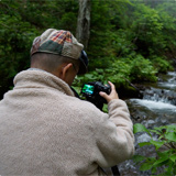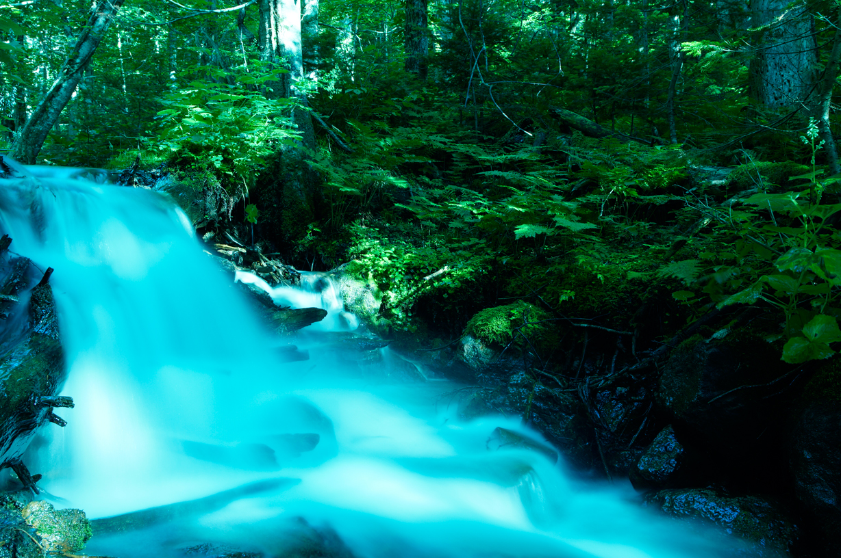 長時間露光で撮影した渓流の写真。「いままでNDフィルターを使う場合、フィルターを付けたり、外したりしながら構図を決めていたのですが、このカメラでは画面が明るいままなので、フィルターを外す必要がなく、そのまま構図を確認できます」。三好氏はフィルターを付けているのを忘れてしまいそうだったという。「このカメラならNDフィルターやPLフィルターを簡単に使えるので、新しいテクニックも試せますね」。常に第一線で活躍しながら、さらにテクニックを磨きたいと語る三好氏の向上心に驚く。