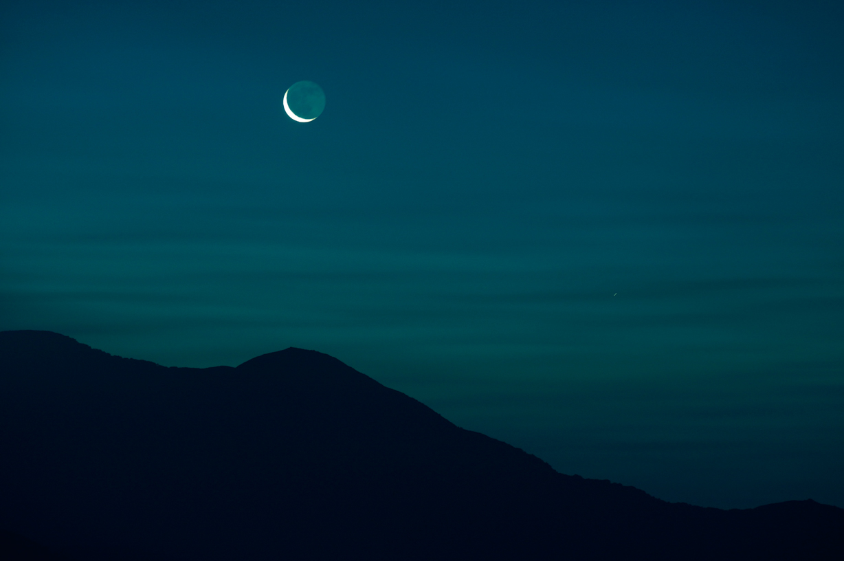 「地球照」といって月の欠けた部分がうっすらと見える現象。「望遠ズームレンズで撮ったのですが、一般的に望遠側では開放値が暗くなるので、こういう月を撮るときにはピントを合わせにくいのですが、この液晶モニターでは、明るいレンズ、暗いレンズ関係なく、明るいまま映し出されるので、ピント合わせが気持ちよく行えましたね。レンズの暗さを感じないので、たとえばSTFレンズなんかを使うとおもしろいと思いましたね。きっと、それぞれのレンズの描写力を存分に楽しめるはずです」。