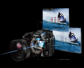 水上:世界初(※)の「デュアルAF」システムは、19点のAFセンサーモジュールと、“面”のように動作する102点の像面位相差AFセンサーが同時に駆動します。センサーの数が限られている従来のAFセンサーモジュールだけですと、測距“点”上に被写体がない場合はフォーカスが合わない“抜け”が発生してしまうことがありました。「デュアルAF」システムでは“面”の役割を持つ像面位相差AFセンサーが被写体を捉え続けます。さらに広い“面”のどこかに被写体がかかっていれば、被写体が動いても高精度にフォーカスを合わせ続けることができます。“点”と“面”を組み合わせたα99の「デュアルAF」は、激しいスポーツや動物など動きが早い被写体を写真に収めるときに重宝するでしょう。