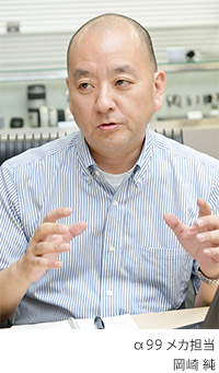 岡崎:α99では写真だけでなく動画を撮影する機会も多いでしょう。動画撮影に配慮して、各操作ボタンの接点にはゴムを使用して操作をほぼ無音化しています。また、ボタンを防滴・防塵(ぼうじん)に配慮したシーリング構造にするとともに、HDMIなどの端子カバー部分は密閉構造として、雨中などアウトドアでの信頼性も高めています。