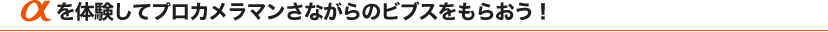 1月に発売となった、70-400mm F4-5.6 G SSM 『SAL70400G』をはじめとする望遠レンズ各種の、レンズ体験コーナーをご用意しております。ご体験いただき、アンケートにお答えいただくともれなくαオリジナルビブスをプレゼントいたします。この機会をお見逃しなく!