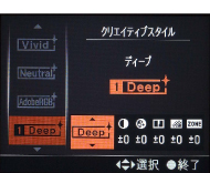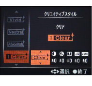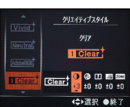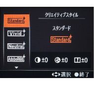 マルチセレクターの中央を押して、クリエイティブスタイルの専用画面を表示する。