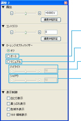 *JPEGで撮影した画像はIDC-SR Ver.2.0でも扱えますが、Dレンジオプティマイザーの調整はできません。
