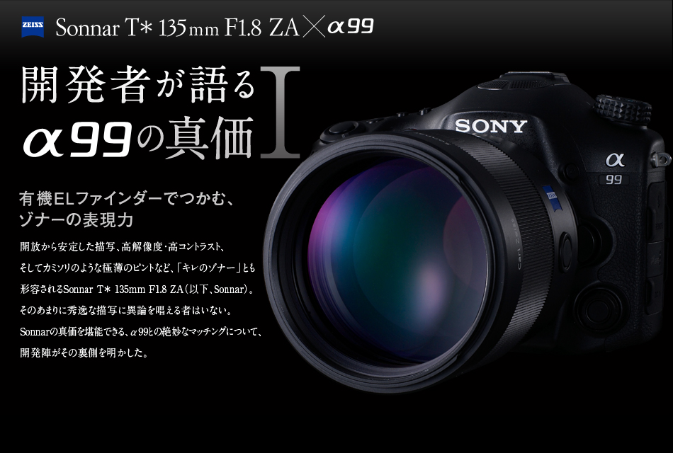 その秀逸な描写の味をそのまま再現する「有機ELファインダー」を搭載したα99でこそ、Sonnarは真価を発揮するという。
