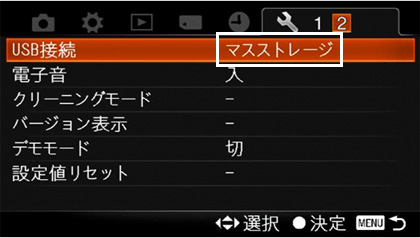 「マスストレージ」以外の設定になっている場合は、「マスストレージ」に設定してください。