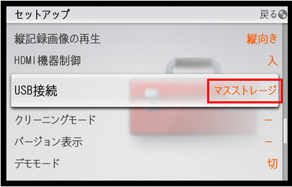 「マスストレージ」以外の設定になっている場合は、「マスストレージ」に設定してください。