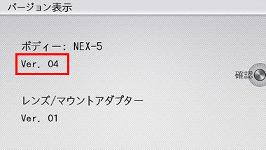 - [メニュー]→[セットアップ]→[バージョン表示]を選択し、ファームウェアのバージョン「Ver.04]