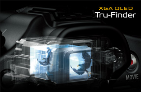 高解像度・高コントラストの「XGA OLED Tru-Finder(トゥルーファインダー)」を搭載。カメラの設定値に応じたリアルタイムな画像の確認や、拡大表示機能による厳密なピント合わせなど、創作意図を忠実に反映し、光学ファインダーでは実現できなかった新しいファインダーワークを実現します。