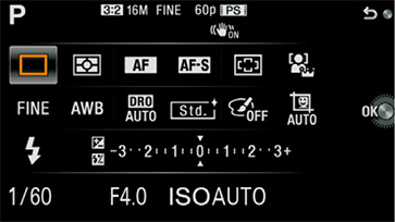 さらにファインダー撮影時に、Fn(ファンクション)ボタンを押すだけで、ダイレクトに設定を変更できる「クイックナビ」も搭載。NEX-6は、撮影者の意図を直感的な操作でスピーディーに反映できる、デジタル一眼カメラです。