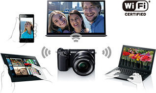 「Wi-Fi対応ワイヤレス通信」機能を搭載。撮った写真をその場でスマートフォンやタブレットにダイレクト転送したり、PCにワイヤレスで保存したりと、写真の共有、鑑賞、保存までが快適に行えます。
