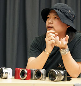 「NEX-3」のデザインは、「NEX-5」よりももっと「フリー」なものにしようと心がけました。私自身、デジタル一眼レフカメラのヘビーユーザーではなく、どちらかというとコンパクトデジタルカメラをより多く使うのですが、そんな自分を含め、より多くのユーザーを想定しています。
