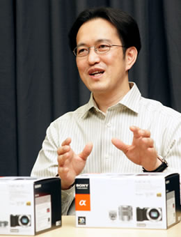 我々デザイン部門からも、コンパクトでデジタル一眼レフカメラの画質を持つカメラの開発を提案していました。それが満を持して結実した、この「NEX-5」、「NEX-3」です。