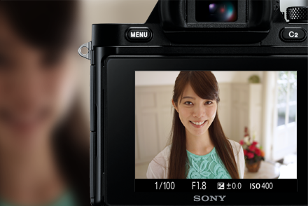 α7は、コンパクトなボディに35mmフルサイズイメージセンサーを搭載。一般的なデジタル一眼カメラに多いAPS-Cサイズのセンサーと比べて約2.3倍も大きく、より多くの光を受け止められるため、光量の少ない室内でもクリアに撮影でき、豊かなぼけ表現も可能。人物を引き立たせ、髪の毛の一本一本まで緻密に描写します。