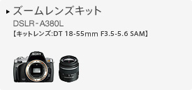 ヘルプガイドとグラフィック表示採用で一眼レフが初めての方にも使いやすい、有効1420万画素、標準と望遠の2本のズームレンズをセットにした小型・軽量な「はじめて一眼」〈α380ダブルズームレンズキット〉