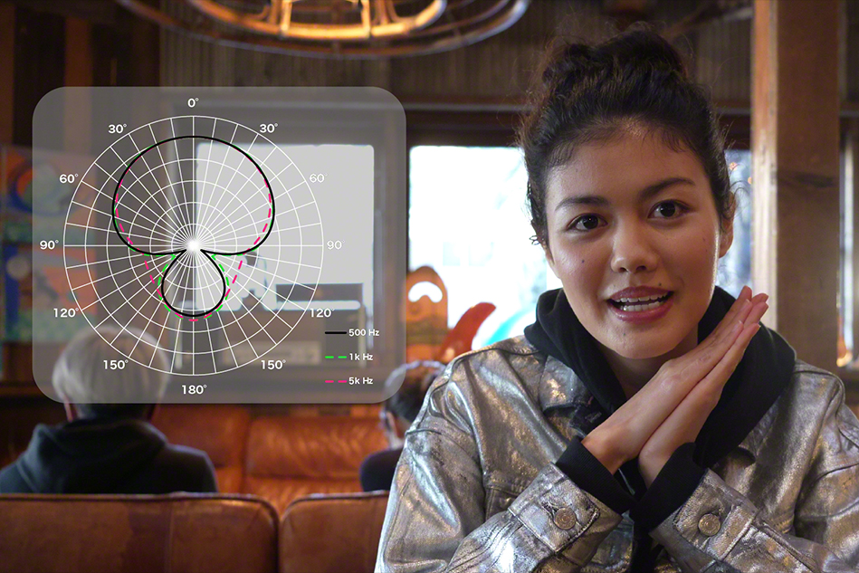 低域の収音性に優れているので、人の音声を聴きやすくクリアに収音できます。Vlogでの自撮りや友人、家族など人物の声を収音するのに適しています。
