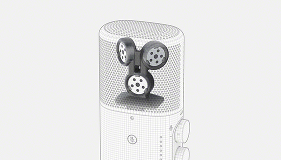 ECM-S1のマイクロホンには、ステレオを含む3つの収音モードに応じた専用設計カプセルを含む、3つのΦ14mm大口径カプセルを搭載しています。高感度かつワイドレンジな周波数特性を実現し、クリアな収音が可能です。